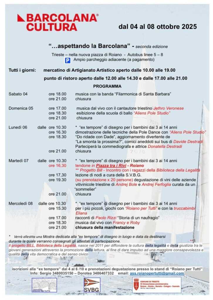 “Aspettando la Barcolana” è un evento organizzato dall’associazione “Roiano per Tutti” ApS di Trieste con la Organizzazione della terza Circoscrizione del Comune di Trieste e Barcolana Srl e vuole essere un momento di aggregazione nella settimana che precede la regata più importante del mondo.